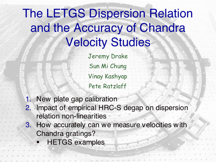 2003 : Chandra : Chung : CXC : degap : dispersion relation : Drake : HRC-S : HRC-S degap : Kashyap : LETG : Ratzlaff