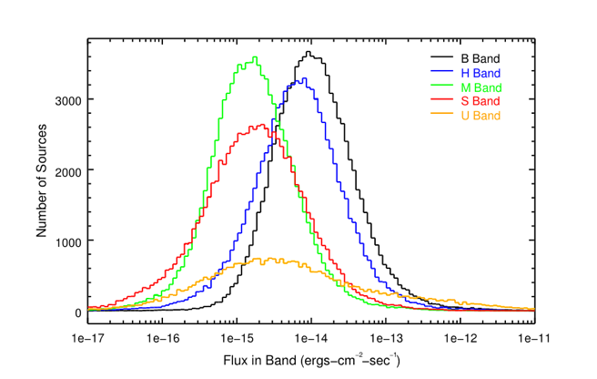 Although CSC fluxes range from below ~10-18 erg-cm-2-sec-1 (for the deepest exposures) to ~10-10 erg-cm-2-sec-1, most CSC sources have fluxes, as shown in Figure 2, of ~10-15 - 10-13 erg-cm-2-sec-1 (B band, or 0.5-7.0 keV).