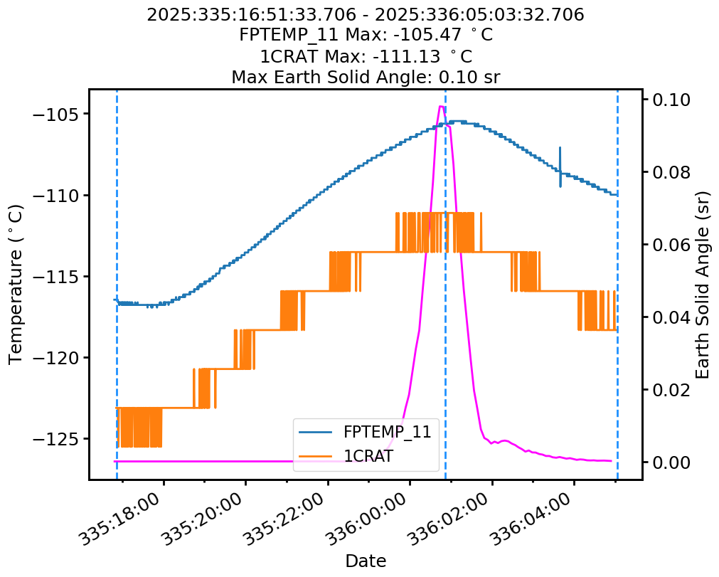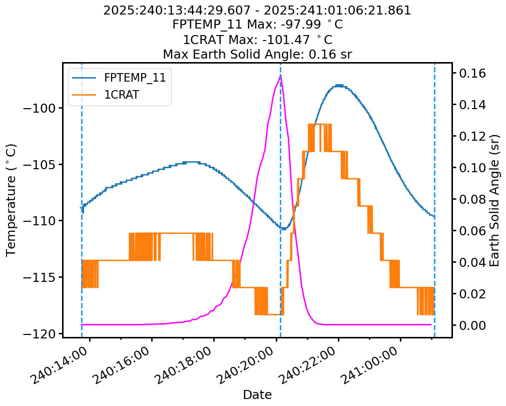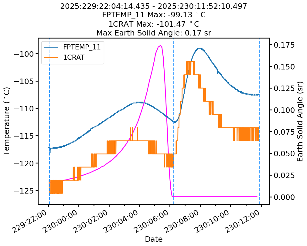 | Date | FPTEMP Max (°C) | 1CRAT Max (°C) |