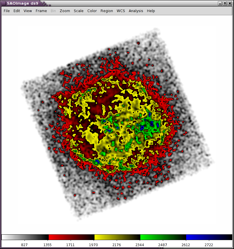 The "heart" color look-up table from ImageJ being used in ds9. The data have been smoothed with a 3 pixel Gaussian.