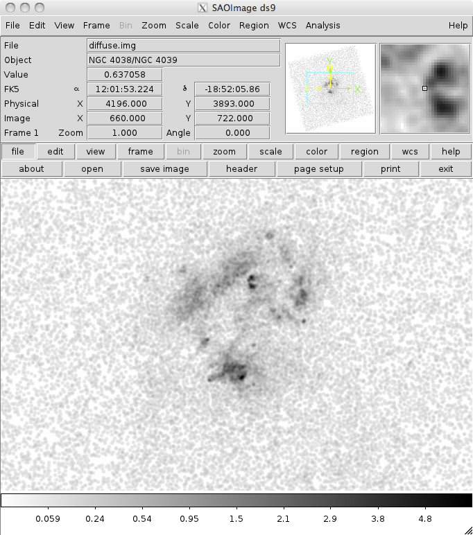 unix% ds9 broad_thresh.img -smooth radius 2 -smooth -scale log