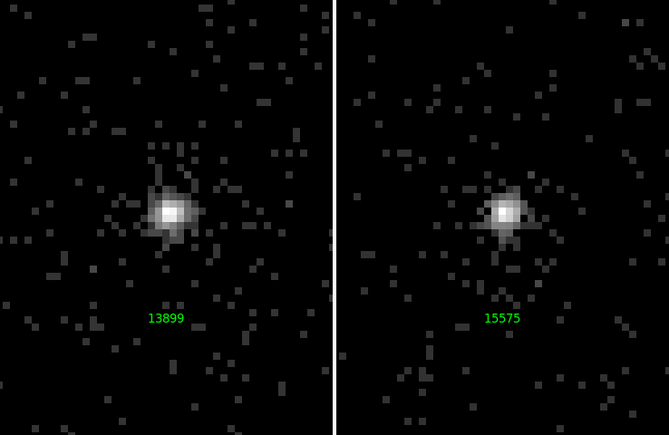 We can see that these two observations were taken a few days apart and have approximately the same exposure time.