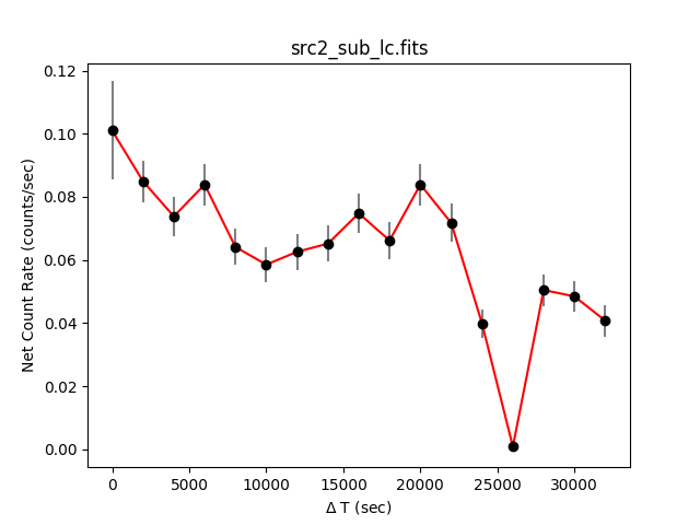 2. This is not a background feature, since it is present in both the subtracted (src2_sub_lc.fits) and unsubtracted (curve_2.fits) lightcurves.