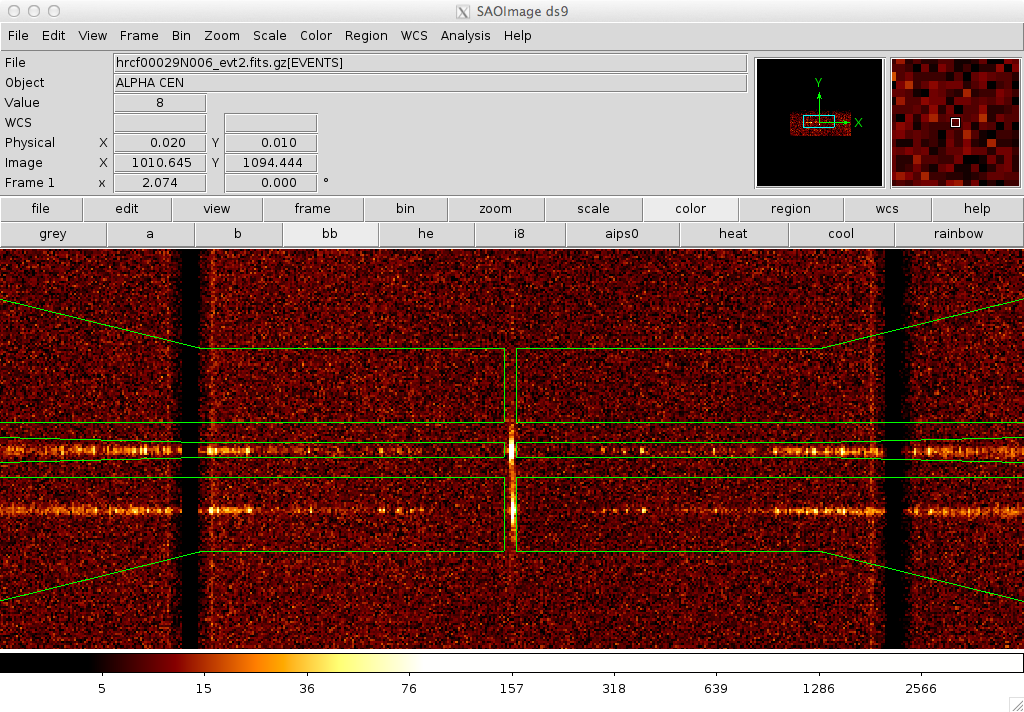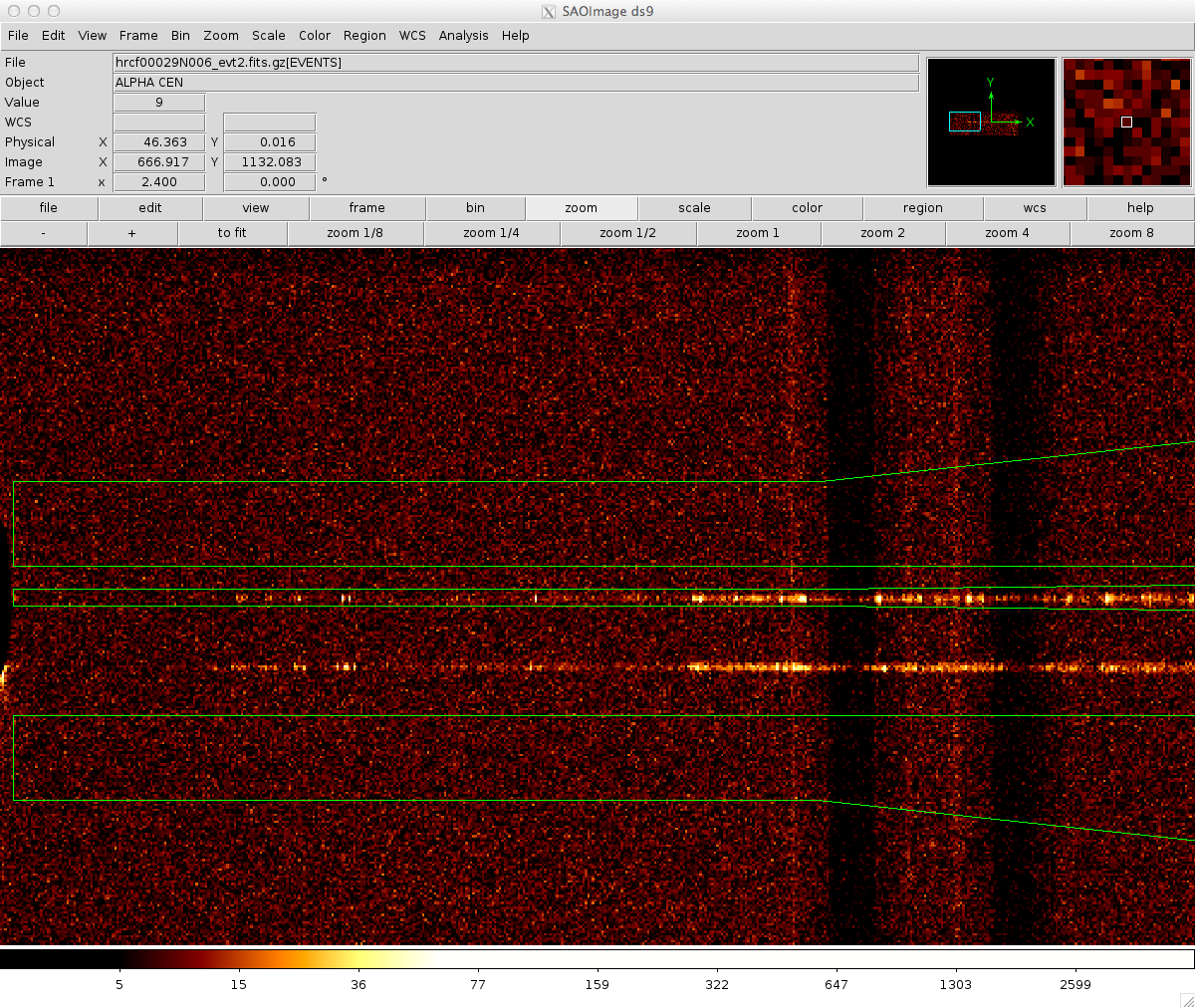 To confirm that the edits made to the region were well-chosen, we inspect the events in wavelength coordinates. With the event file displayed in DS9: