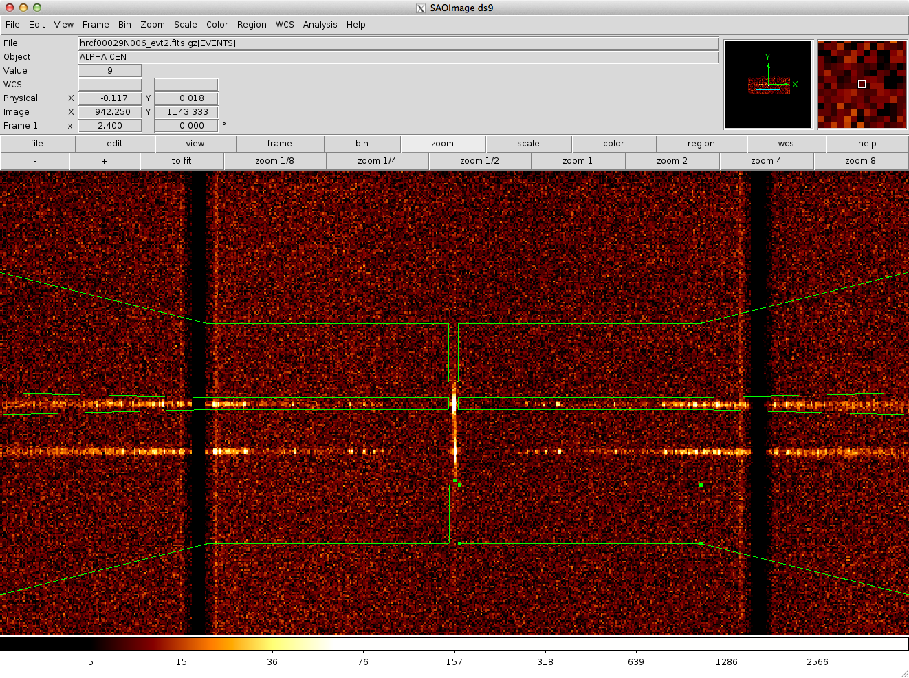 Next, we set the height and width to something convenient for grating spectra, and adjust the colorscale and colormap in the DS9 menu.
