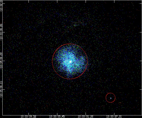 unix% cat sourcelist_J2000.reg # Region file format: CIAO version 1.0 circle(18:33:33.627,-10:34:07.32,0.615') circle(18:33:27.821,-10:35:23.58,0.164')