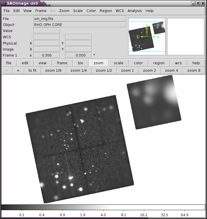 We are now ready to smooth the original image. For this exercise we will smooth with a cone whose base radius is equal to the PSF size. To do this we use the dmimgadapt tool.