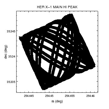 [Print media version: The curve shows the lissajous pattern, where the ra and dec values are bounded within an approximate square (rotated on the sky) but via a curve that - if left long enough - would eventually cover the whole square.]