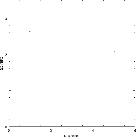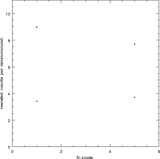 size of the points. The y-axis is the net detector rate, normalized for anode