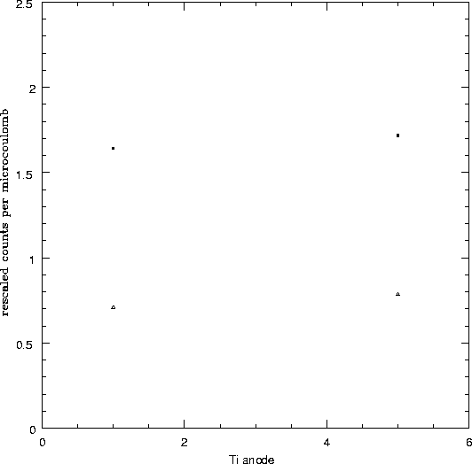 size of the points. The y-axis is the net detector rate, normalized for anode
