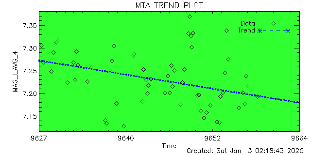 | ID | ID String | Magnitude | Data Quality (%) | Total Data | Average | Min | Max | Good | Marginal | Bad | 1 | ACIS-1 | 7.251 | 6.496 | 7.904 | 100 | 0 | 0 | 51 | 2 | ACIS-2 | 7.130 | 6.748 | 7.300 | 100 | 0 | 0 | 53 | 3 | ACIS-3 | 7.425 | 6.308 | 7.570 | 100 | 0 | 0 | 33 | 4 | ACIS-4 | 7.233 | 6.781 | 7.401 | 100 | 0 | 0 | 60 | 5 | ACIS-5 | 7.235 | 6.768 | 7.426 | 100 | 0 | 0 | 110 | 6 | ACIS-6 | 7.281 | 6.539 | 7.458 | 100 | 0 | 0 | 41 | 7 | HRC-I-1 | 6.807 | 6.654 | 6.836 | 100 | 0 | 0 | 1 | 8 | HRC-I-2 | 6.835 | 6.811 | 6.856 | 100 | 0 | 0 | 1 | 9 | HRC-I-3 | 6.876 | 6.803 | 6.903 | 100 | 0 | 0 | 1 | 10 | HRC-I-4 | 0.000 | 0.000 | 0.000 | 0 | 0 | 0 | 0 | 11 | HRC-S-1 | 0.000 | 0.000 | 0.000 | 0 | 0 | 0 | 0 | 12 | HRC-S-2 | 0.000 | 0.000 | 0.000 | 0 | 0 | 0 | 0 | 13 | HRC-S-3 | 0.000 | 0.000 | 0.000 | 0 | 0 | 0 | 0 | 14 | HRC-S-4 | 0.000 | 0.000 | 0.000 | 0 | 0 | 0 | 0 |