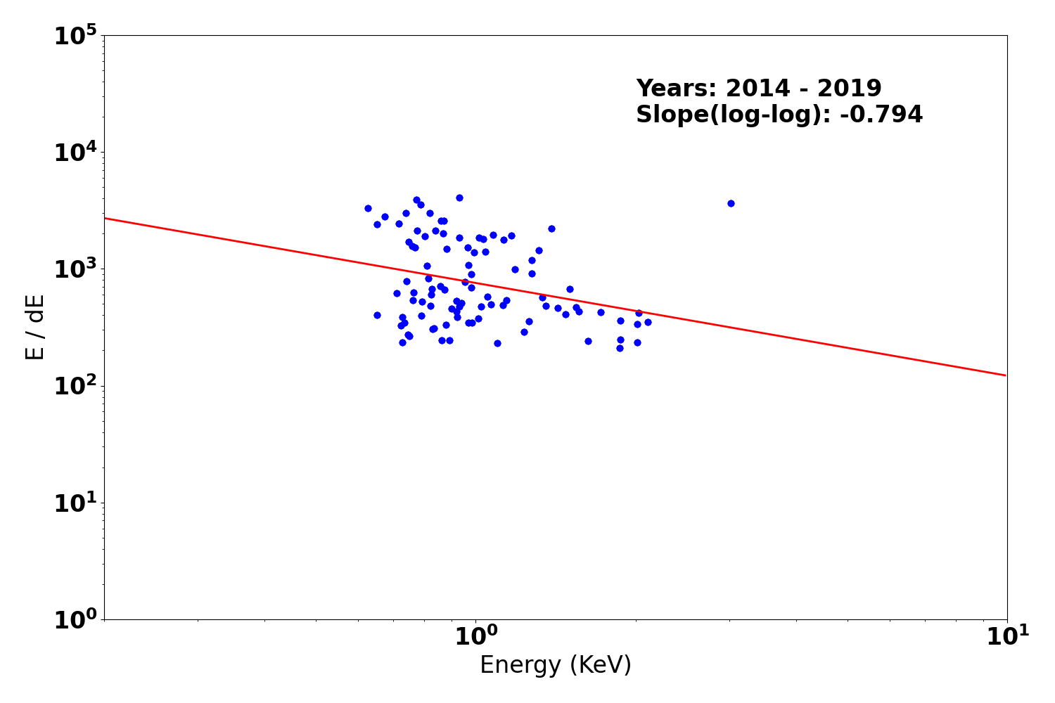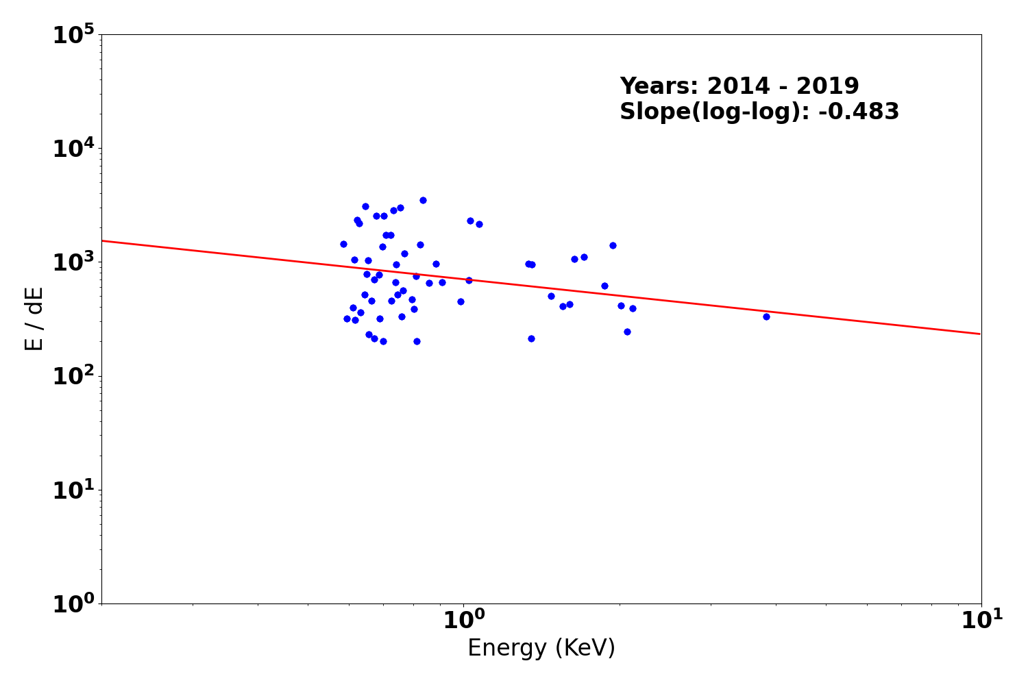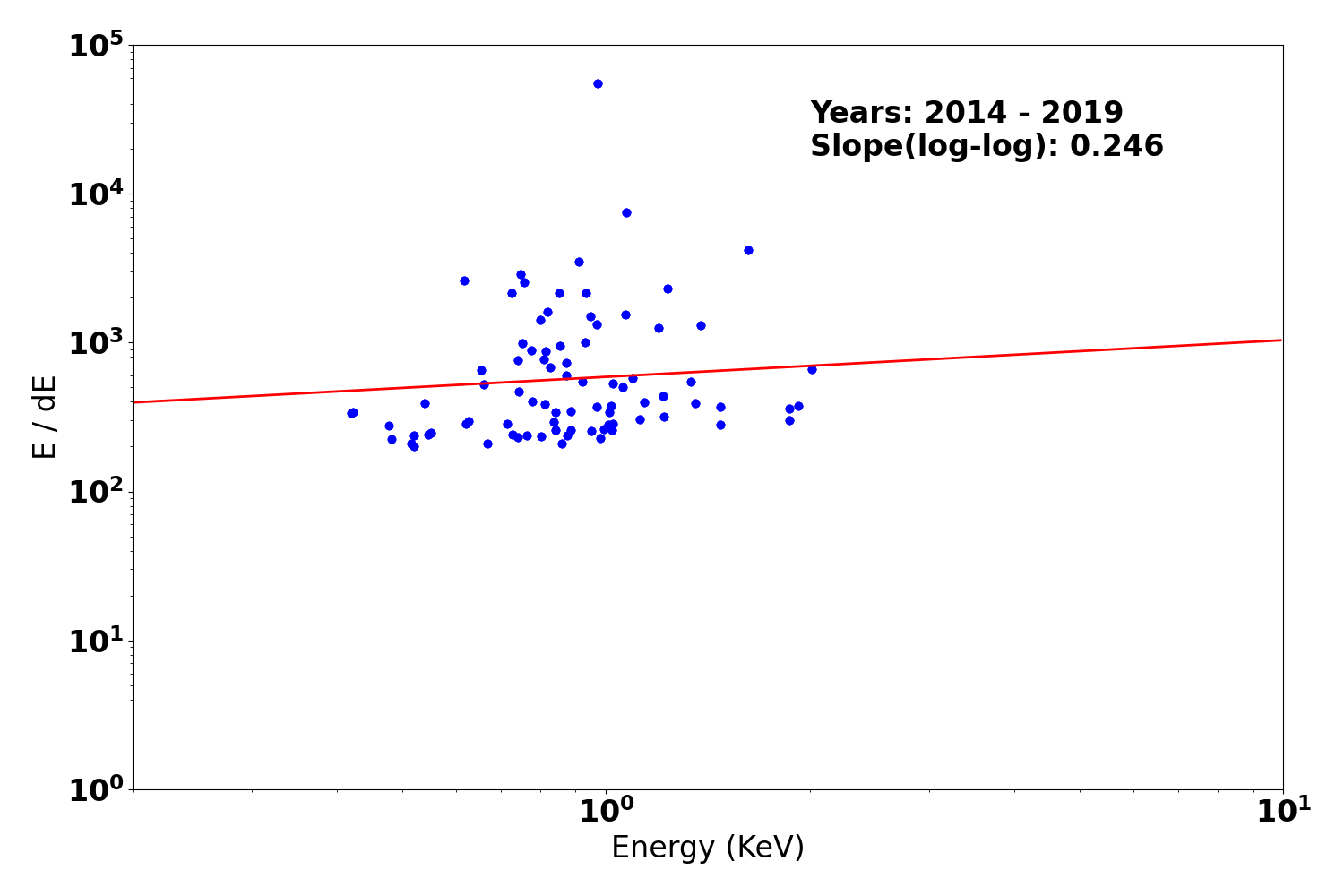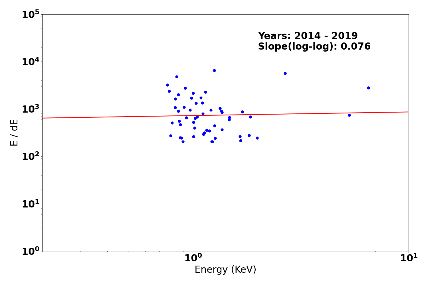 - The exposure map is opened with ds9, and check a distribution of count rates against energy. From this, estimate the upper threshold value. Any events beyond this upper threshold are assumed erroneous events such as bad pixels.