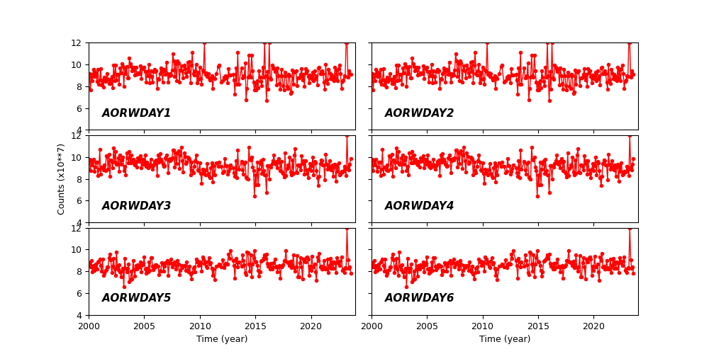 Please check more detail plots at Telemetered Photon Dose Trend page.