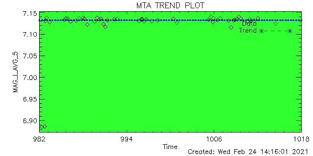 ID | ID String | Magnitude | Data Quality (%) | Total Data | Average | Min | Max | Good | Marginal | Bad | 1 | ACIS-1 | 7.110 | 6.069 | 7.182 | 100 | 0 | 0 | 16 | 2 | ACIS-2 | 6.995 | 6.633 | 7.228 | 100 | 0 | 0 | 38 | 3 | ACIS-3 | 7.295 | 6.791 | 7.383 | 100 | 0 | 0 | 4 | 4 | ACIS-4 | 7.085 | 5.698 | 7.405 | 100 | 0 | 0 | 41 | 5 | ACIS-5 | 7.123 | 6.465 | 7.445 | 100 | 0 | 0 | 54 | 6 | ACIS-6 | 7.202 | 6.705 | 7.345 | 100 | 0 | 0 | 20 | 7 | HRC-I-1 | 6.857 | 6.785 | 6.886 | 100 | 0 | 0 | 2 | 8 | HRC-I-2 | 6.891 | 6.831 | 6.917 | 100 | 0 | 0 | 2 | 9 | HRC-I-3 | 6.952 | 6.723 | 6.980 | 100 | 0 | 0 | 2 | 10 | HRC-I-4 | 0.000 | 0.000 | 0.000 | 0 | 0 | 0 | 0 | 11 | HRC-S-1 | 6.873 | 6.865 | 6.884 | 100 | 0 | 0 | 1 | 12 | HRC-S-2 | 6.872 | 6.861 | 6.885 | 100 | 0 | 0 | 1 | 13 | HRC-S-3 | 6.900 | 6.881 | 6.919 | 100 | 0 | 0 | 1 | 14 | HRC-S-4 | 0.000 | 0.000 | 0.000 | 0 | 0 | 0 | 0 |