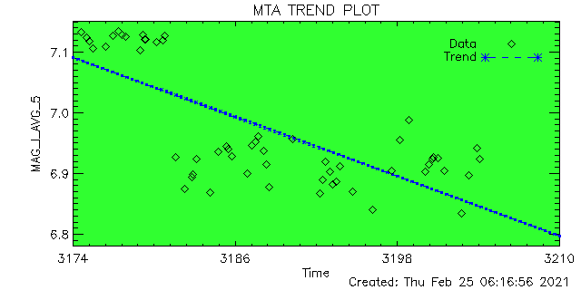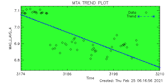 ID | ID String | Magnitude | Data Quality (%) | Total Data | Average | Min | Max | Good | Marginal | Bad | 1 | ACIS-1 | 6.951 | 6.672 | 7.164 | 100 | 0 | 0 | 25 | 2 | ACIS-2 | 6.870 | 5.902 | 7.271 | 100 | 0 | 0 | 55 | 3 | ACIS-3 | 0.000 | 0.000 | 0.000 | 0 | 0 | 0 | 0 | 4 | ACIS-4 | 6.952 | 6.007 | 7.320 | 100 | 0 | 0 | 58 | 5 | ACIS-5 | 6.972 | 6.170 | 7.252 | 98 | 0 | 1 | 57 | 6 | ACIS-6 | 7.070 | 6.769 | 7.544 | 100 | 0 | 0 | 18 | 7 | HRC-I-1 | 6.859 | 6.847 | 6.867 | 100 | 0 | 0 | 1 | 8 | HRC-I-2 | 6.883 | 6.795 | 6.903 | 100 | 0 | 0 | 4 | 9 | HRC-I-3 | 6.950 | 6.849 | 7.259 | 100 | 0 | 0 | 4 | 10 | HRC-I-4 | 6.861 | 6.527 | 6.888 | 100 | 0 | 0 | 3 | 11 | HRC-S-1 | 6.876 | 6.760 | 6.913 | 100 | 0 | 0 | 5 | 12 | HRC-S-2 | 6.877 | 6.412 | 6.921 | 100 | 0 | 0 | 3 | 13 | HRC-S-3 | 6.892 | 6.448 | 6.936 | 100 | 0 | 0 | 6 | 14 | HRC-S-4 | 6.852 | 6.797 | 6.888 | 100 | 0 | 0 | 4 |