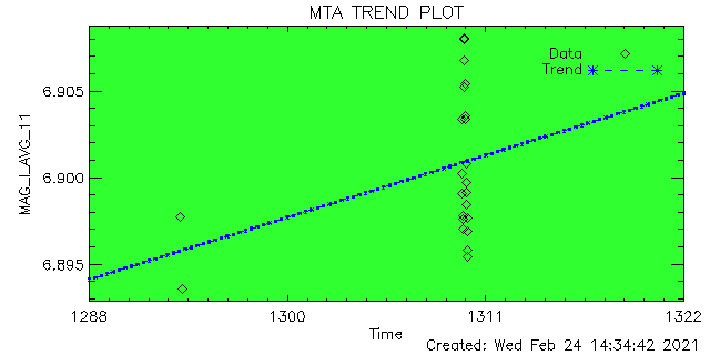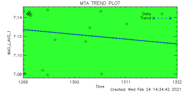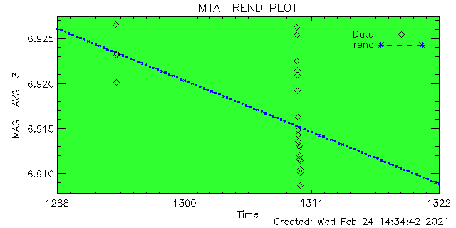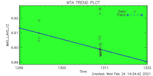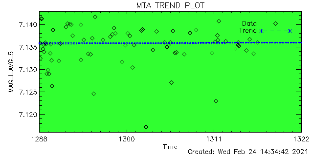 ID | ID String | Magnitude | Data Quality (%) | Total Data | Average | Min | Max | Good | Marginal | Bad | 1 | ACIS-1 | 7.124 | 6.430 | 7.165 | 100 | 0 | 0 | 20 | 2 | ACIS-2 | 7.011 | 5.606 | 7.211 | 100 | 0 | 0 | 57 | 3 | ACIS-3 | 7.237 | 7.095 | 7.253 | 100 | 0 | 0 | 1 | 4 | ACIS-4 | 7.095 | 6.668 | 7.357 | 100 | 0 | 0 | 58 | 5 | ACIS-5 | 7.135 | 6.407 | 8.442 | 100 | 0 | 0 | 74 | 6 | ACIS-6 | 7.194 | 5.755 | 7.283 | 100 | 0 | 0 | 20 | 7 | HRC-I-1 | 6.862 | 6.503 | 7.185 | 100 | 0 | 0 | 22 | 8 | HRC-I-2 | 6.899 | 6.778 | 7.047 | 100 | 0 | 0 | 19 | 9 | HRC-I-3 | 6.963 | 6.661 | 7.287 | 100 | 0 | 0 | 22 | 10 | HRC-I-4 | 6.888 | 6.794 | 6.913 | 100 | 0 | 0 | 9 | 11 | HRC-S-1 | 6.900 | 6.805 | 6.922 | 100 | 0 | 0 | 23 | 12 | HRC-S-2 | 6.904 | 6.649 | 6.964 | 100 | 0 | 0 | 24 | 13 | HRC-S-3 | 6.917 | 6.819 | 6.936 | 100 | 0 | 0 | 22 | 14 | HRC-S-4 | 6.888 | 6.839 | 6.925 | 100 | 0 | 0 | 6 |