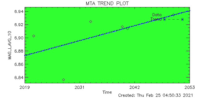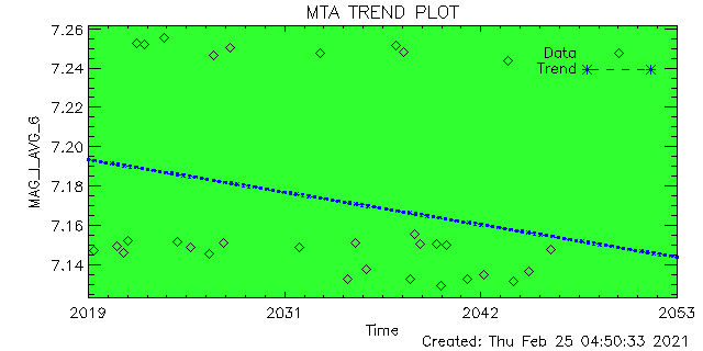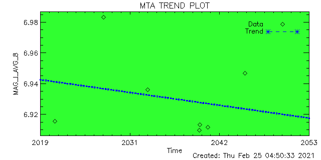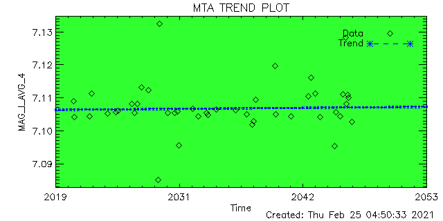 ID | ID String | Magnitude | Data Quality (%) | Total Data | Average | Min | Max | Good | Marginal | Bad | 1 | ACIS-1 | 7.132 | 6.085 | 7.352 | 100 | 0 | 0 | 33 | 2 | ACIS-2 | 7.012 | 6.065 | 7.280 | 100 | 0 | 0 | 39 | 3 | ACIS-3 | 0.000 | 0.000 | 0.000 | 0 | 0 | 0 | 0 | 4 | ACIS-4 | 7.107 | 6.426 | 7.358 | 100 | 0 | 0 | 44 | 5 | ACIS-5 | 7.125 | 5.970 | 7.436 | 100 | 0 | 0 | 68 | 6 | ACIS-6 | 7.174 | 5.639 | 7.276 | 100 | 0 | 0 | 32 | 7 | HRC-I-1 | 6.889 | 6.458 | 6.934 | 100 | 0 | 0 | 7 | 8 | HRC-I-2 | 6.931 | 6.628 | 6.999 | 100 | 0 | 0 | 7 | 9 | HRC-I-3 | 6.982 | 6.954 | 7.024 | 100 | 0 | 0 | 2 | 10 | HRC-I-4 | 6.899 | 6.747 | 6.961 | 100 | 0 | 0 | 5 | 11 | HRC-S-1 | 6.908 | 6.754 | 6.992 | 100 | 0 | 0 | 27 | 12 | HRC-S-2 | 6.932 | 6.783 | 6.961 | 100 | 0 | 0 | 27 | 13 | HRC-S-3 | 6.932 | 6.824 | 6.952 | 100 | 0 | 0 | 26 | 14 | HRC-S-4 | 6.901 | 6.195 | 6.928 | 100 | 0 | 0 | 13 |
