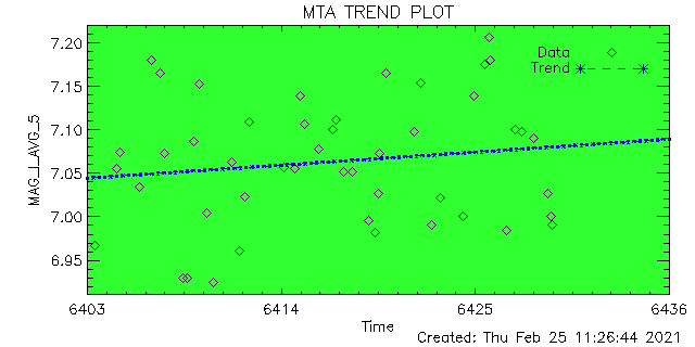 ID | ID String | Magnitude | Data Quality (%) | Total Data | Average | Min | Max | Good | Marginal | Bad | 1 | ACIS-1 | 7.049 | 6.459 | 7.239 | 100 | 0 | 0 | 22 | 2 | ACIS-2 | 6.957 | 6.260 | 7.348 | 100 | 0 | 0 | 43 | 3 | ACIS-3 | 0.000 | 0.000 | 0.000 | 0 | 0 | 0 | 0 | 4 | ACIS-4 | 7.059 | 6.174 | 7.371 | 100 | 0 | 0 | 48 | 5 | ACIS-5 | 7.064 | 6.182 | 7.252 | 100 | 0 | 0 | 47 | 6 | ACIS-6 | 7.138 | 6.274 | 7.401 | 100 | 0 | 0 | 28 | 7 | HRC-I-1 | 6.898 | 6.612 | 6.979 | 100 | 0 | 0 | 3 | 8 | HRC-I-2 | 6.938 | 6.788 | 7.030 | 100 | 0 | 0 | 3 | 9 | HRC-I-3 | 7.003 | 6.637 | 7.343 | 100 | 0 | 0 | 3 | 10 | HRC-I-4 | 0.000 | 0.000 | 0.000 | 0 | 0 | 0 | 0 | 11 | HRC-S-1 | 6.929 | 6.726 | 7.139 | 100 | 0 | 0 | 7 | 12 | HRC-S-2 | 6.900 | 6.559 | 7.163 | 100 | 0 | 0 | 7 | 13 | HRC-S-3 | 6.895 | 6.712 | 7.008 | 100 | 0 | 0 | 7 | 14 | HRC-S-4 | 0.000 | 0.000 | 0.000 | 0 | 0 | 0 | 0 |