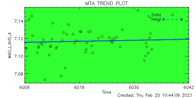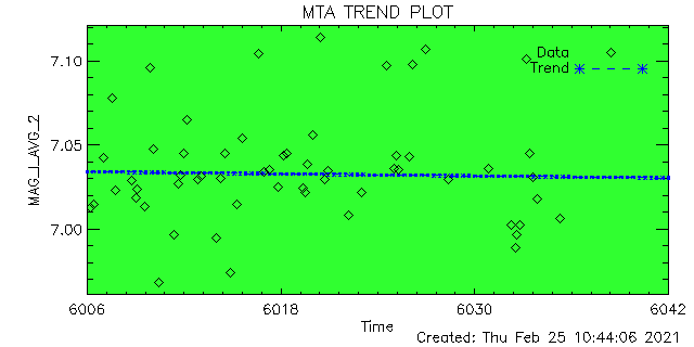 ID | ID String | Magnitude | Data Quality (%) | Total Data | Average | Min | Max | Good | Marginal | Bad | 1 | ACIS-1 | 7.132 | 5.974 | 7.388 | 100 | 0 | 0 | 27 | 2 | ACIS-2 | 7.035 | 6.012 | 7.286 | 100 | 0 | 0 | 58 | 3 | ACIS-3 | 0.000 | 0.000 | 0.000 | 0 | 0 | 0 | 0 | 4 | ACIS-4 | 7.117 | 5.881 | 7.343 | 100 | 0 | 0 | 58 | 5 | ACIS-5 | 7.136 | 6.558 | 7.392 | 100 | 0 | 0 | 62 | 6 | ACIS-6 | 7.218 | 6.336 | 7.519 | 100 | 0 | 0 | 26 | 7 | HRC-I-1 | 6.893 | 6.856 | 6.906 | 100 | 0 | 0 | 2 | 8 | HRC-I-2 | 6.919 | 6.856 | 6.948 | 100 | 0 | 0 | 2 | 9 | HRC-I-3 | 6.973 | 6.959 | 6.994 | 100 | 0 | 0 | 2 | 10 | HRC-I-4 | 0.000 | 0.000 | 0.000 | 0 | 0 | 0 | 0 | 11 | HRC-S-1 | 6.923 | 6.709 | 6.953 | 100 | 0 | 0 | 1 | 12 | HRC-S-2 | 6.915 | 6.875 | 6.928 | 100 | 0 | 0 | 1 | 13 | HRC-S-3 | 6.945 | 6.396 | 6.974 | 100 | 0 | 0 | 1 | 14 | HRC-S-4 | 0.000 | 0.000 | 0.000 | 0 | 0 | 0 | 0 |