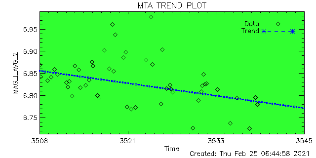 ID | ID String | Magnitude | Data Quality (%) | Total Data | Average | Min | Max | Good | Marginal | Bad | 1 | ACIS-1 | 6.937 | 6.412 | 8.757 | 100 | 0 | 0 | 36 | 2 | ACIS-2 | 6.833 | 5.955 | 7.066 | 100 | 0 | 0 | 52 | 3 | ACIS-3 | 0.000 | 0.000 | 0.000 | 0 | 0 | 0 | 0 | 4 | ACIS-4 | 6.899 | 5.811 | 7.237 | 100 | 0 | 0 | 62 | 5 | ACIS-5 | 6.938 | 5.742 | 7.243 | 100 | 0 | 0 | 58 | 6 | ACIS-6 | 7.006 | 6.666 | 7.285 | 100 | 0 | 0 | 29 | 7 | HRC-I-1 | 6.847 | 6.812 | 6.856 | 100 | 0 | 0 | 1 | 8 | HRC-I-2 | 6.902 | 6.879 | 6.920 | 100 | 0 | 0 | 1 | 9 | HRC-I-3 | 6.953 | 6.870 | 6.964 | 100 | 0 | 0 | 1 | 10 | HRC-I-4 | 0.000 | 0.000 | 0.000 | 0 | 0 | 0 | 0 | 11 | HRC-S-1 | 6.900 | 6.642 | 6.984 | 100 | 0 | 0 | 6 | 12 | HRC-S-2 | 6.890 | 6.391 | 7.112 | 100 | 0 | 0 | 2 | 13 | HRC-S-3 | 6.919 | 6.509 | 7.163 | 100 | 0 | 0 | 6 | 14 | HRC-S-4 | 6.880 | 6.184 | 7.044 | 100 | 0 | 0 | 4 |