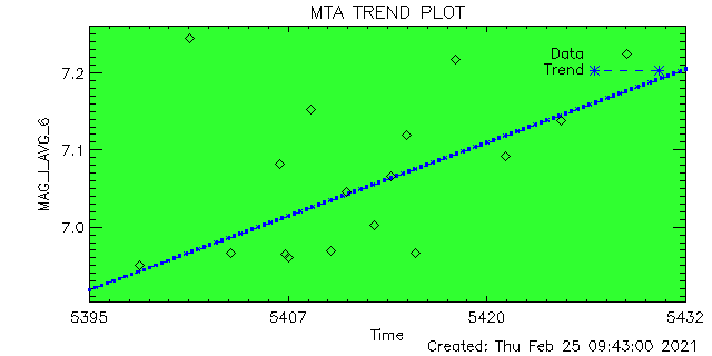 ID | ID String | Magnitude | Data Quality (%) | Total Data | Average | Min | Max | Good | Marginal | Bad | 1 | ACIS-1 | 6.991 | 6.754 | 7.246 | 100 | 0 | 0 | 21 | 2 | ACIS-2 | 6.914 | 5.551 | 7.249 | 100 | 0 | 0 | 28 | 3 | ACIS-3 | 0.000 | 0.000 | 0.000 | 0 | 0 | 0 | 0 | 4 | ACIS-4 | 6.988 | 6.081 | 7.287 | 100 | 0 | 0 | 30 | 5 | ACIS-5 | 7.008 | 6.494 | 7.321 | 100 | 0 | 0 | 28 | 6 | ACIS-6 | 7.059 | 5.986 | 7.258 | 100 | 0 | 0 | 16 | 7 | HRC-I-1 | 6.830 | 6.778 | 6.842 | 100 | 0 | 0 | 1 | 8 | HRC-I-2 | 6.882 | 6.859 | 6.918 | 100 | 0 | 0 | 1 | 9 | HRC-I-3 | 6.931 | 6.877 | 6.949 | 100 | 0 | 0 | 1 | 10 | HRC-I-4 | 0.000 | 0.000 | 0.000 | 0 | 0 | 0 | 0 | 11 | HRC-S-1 | 0.000 | 0.000 | 0.000 | 0 | 0 | 0 | 0 | 12 | HRC-S-2 | 0.000 | 0.000 | 0.000 | 0 | 0 | 0 | 0 | 13 | HRC-S-3 | 0.000 | 0.000 | 0.000 | 0 | 0 | 0 | 0 | 14 | HRC-S-4 | 0.000 | 0.000 | 0.000 | 0 | 0 | 0 | 0 |