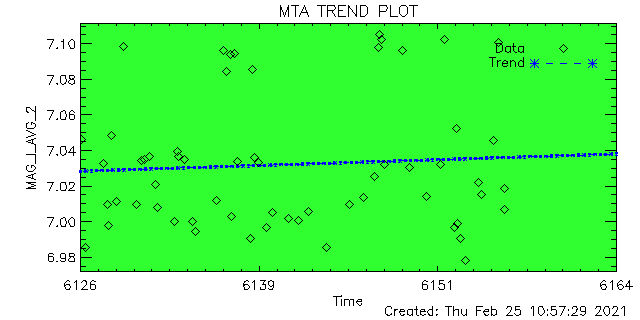 ID | ID String | Magnitude | Data Quality (%) | Total Data | Average | Min | Max | Good | Marginal | Bad | 1 | ACIS-1 | 7.141 | 5.270 | 7.362 | 100 | 0 | 0 | 54 | 2 | ACIS-2 | 7.032 | 6.600 | 7.219 | 100 | 0 | 0 | 60 | 3 | ACIS-3 | 0.000 | 0.000 | 0.000 | 0 | 0 | 0 | 0 | 4 | ACIS-4 | 7.119 | 6.002 | 7.419 | 100 | 0 | 0 | 69 | 5 | ACIS-5 | 7.133 | 6.281 | 7.456 | 100 | 0 | 0 | 97 | 6 | ACIS-6 | 7.170 | 6.067 | 7.384 | 100 | 0 | 0 | 41 | 7 | HRC-I-1 | 6.882 | 6.525 | 6.918 | 100 | 0 | 0 | 1 | 8 | HRC-I-2 | 6.908 | 6.826 | 6.948 | 100 | 0 | 0 | 1 | 9 | HRC-I-3 | 6.985 | 6.744 | 7.014 | 100 | 0 | 0 | 1 | 10 | HRC-I-4 | 0.000 | 0.000 | 0.000 | 0 | 0 | 0 | 0 | 11 | HRC-S-1 | 0.000 | 0.000 | 0.000 | 0 | 0 | 0 | 0 | 12 | HRC-S-2 | 0.000 | 0.000 | 0.000 | 0 | 0 | 0 | 0 | 13 | HRC-S-3 | 0.000 | 0.000 | 0.000 | 0 | 0 | 0 | 0 | 14 | HRC-S-4 | 0.000 | 0.000 | 0.000 | 0 | 0 | 0 | 0 |