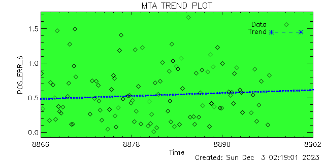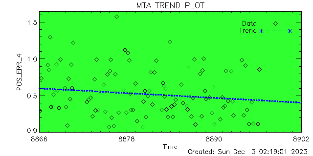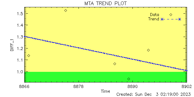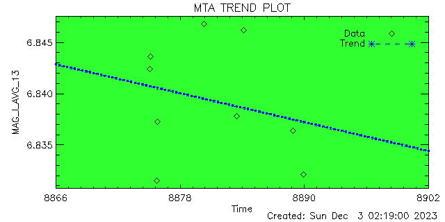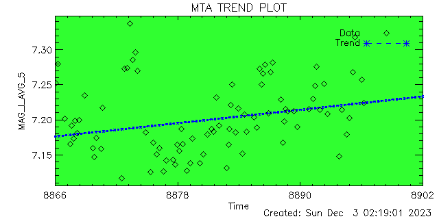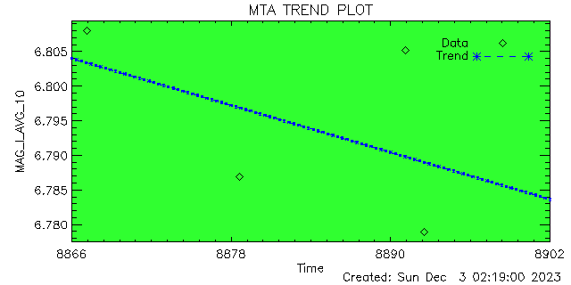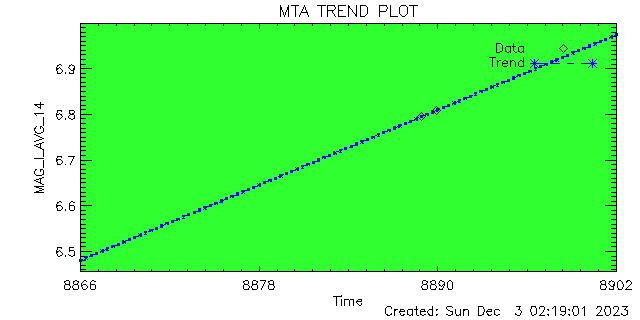 ID | ID String | Magnitude | Data Quality (%) | Total Data | Average | Min | Max | Good | Marginal | Bad | 1 | ACIS-1 | 7.228 | 6.349 | 7.404 | 100 | 0 | 0 | 36 | 2 | ACIS-2 | 7.099 | 6.233 | 7.310 | 100 | 0 | 0 | 56 | 3 | ACIS-3 | 7.378 | 7.144 | 7.481 | 100 | 0 | 0 | 16 | 4 | ACIS-4 | 7.206 | 6.519 | 7.356 | 100 | 0 | 0 | 62 | 5 | ACIS-5 | 7.203 | 6.778 | 7.367 | 100 | 0 | 0 | 86 | 6 | ACIS-6 | 7.248 | 6.808 | 7.481 | 100 | 0 | 0 | 35 | 7 | HRC-I-1 | 6.794 | 6.679 | 6.837 | 100 | 0 | 0 | 8 | 8 | HRC-I-2 | 6.831 | 6.747 | 6.864 | 100 | 0 | 0 | 6 | 9 | HRC-I-3 | 6.860 | 6.765 | 6.895 | 100 | 0 | 0 | 6 | 10 | HRC-I-4 | 6.795 | 6.668 | 6.833 | 100 | 0 | 0 | 4 | 11 | HRC-S-1 | 6.794 | 6.663 | 6.823 | 100 | 0 | 0 | 7 | 12 | HRC-S-2 | 6.797 | 6.617 | 6.828 | 100 | 0 | 0 | 9 | 13 | HRC-S-3 | 6.839 | 6.263 | 6.868 | 100 | 0 | 0 | 9 | 14 | HRC-S-4 | 6.801 | 6.676 | 6.832 | 100 | 0 | 0 | 2 |