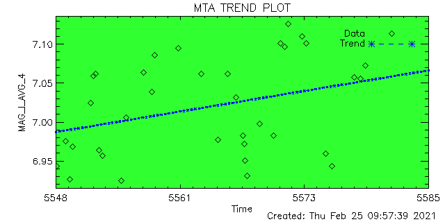 ID | ID String | Magnitude | Data Quality (%) | Total Data | Average | Min | Max | Good | Marginal | Bad | 1 | ACIS-1 | 7.006 | 6.301 | 7.352 | 100 | 0 | 0 | 24 | 2 | ACIS-2 | 6.920 | 6.563 | 7.425 | 100 | 0 | 0 | 26 | 3 | ACIS-3 | 0.000 | 0.000 | 0.000 | 0 | 0 | 0 | 0 | 4 | ACIS-4 | 7.019 | 6.262 | 7.498 | 100 | 0 | 0 | 35 | 5 | ACIS-5 | 7.023 | 6.075 | 7.337 | 97 | 0 | 2 | 46 | 6 | ACIS-6 | 7.052 | 6.090 | 7.280 | 100 | 0 | 0 | 19 | 7 | HRC-I-1 | 0.000 | 0.000 | 0.000 | 0 | 0 | 0 | 0 | 8 | HRC-I-2 | 0.000 | 0.000 | 0.000 | 0 | 0 | 0 | 0 | 9 | HRC-I-3 | 0.000 | 0.000 | 0.000 | 0 | 0 | 0 | 0 | 10 | HRC-I-4 | 0.000 | 0.000 | 0.000 | 0 | 0 | 0 | 0 | 11 | HRC-S-1 | 0.000 | 0.000 | 0.000 | 0 | 0 | 0 | 0 | 12 | HRC-S-2 | 0.000 | 0.000 | 0.000 | 0 | 0 | 0 | 0 | 13 | HRC-S-3 | 0.000 | 0.000 | 0.000 | 0 | 0 | 0 | 0 | 14 | HRC-S-4 | 0.000 | 0.000 | 0.000 | 0 | 0 | 0 | 0 |