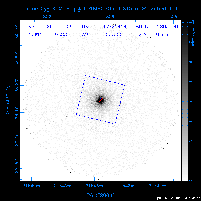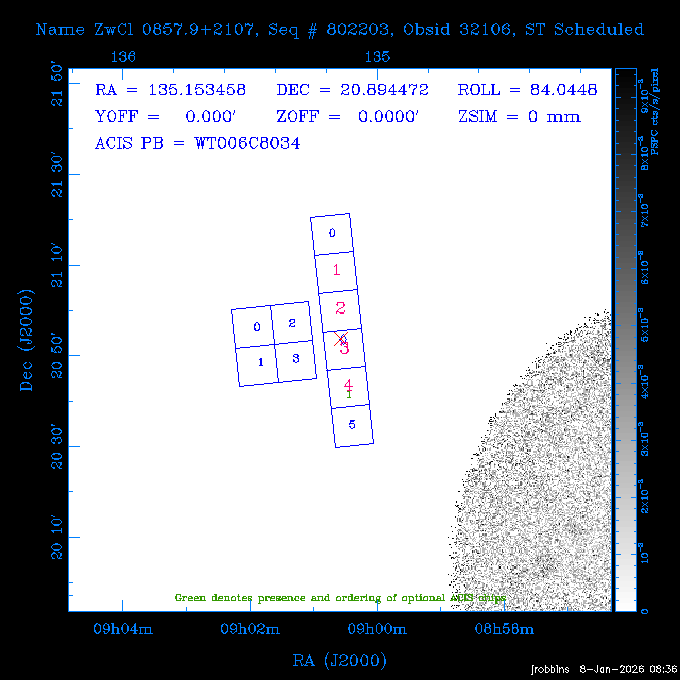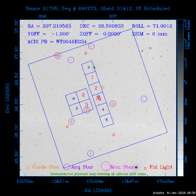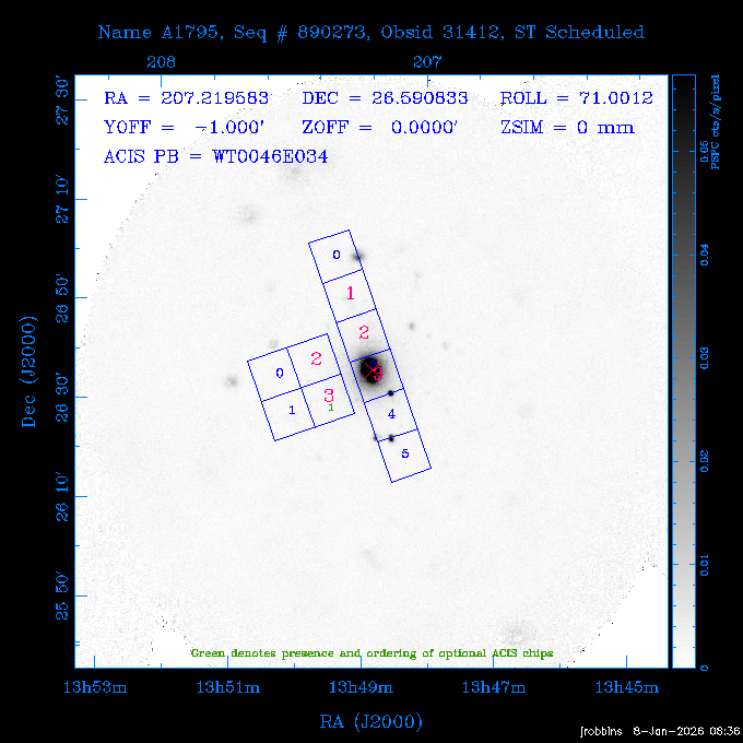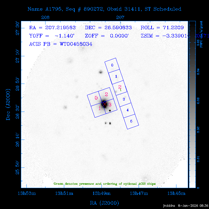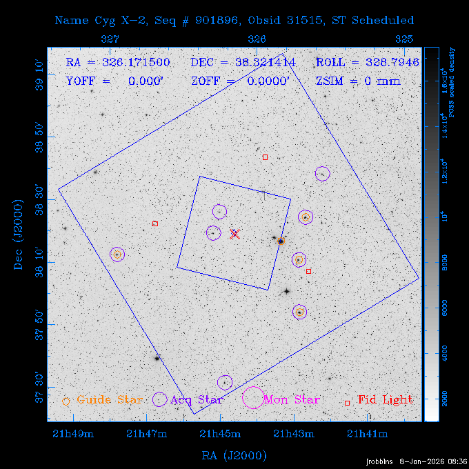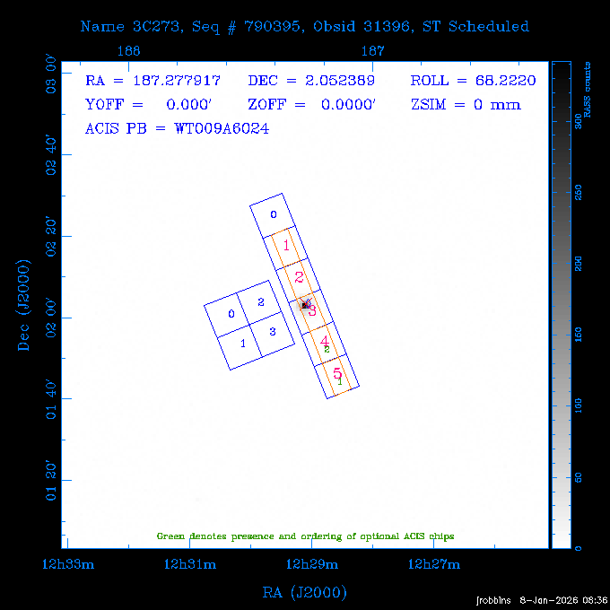 Seq # NB ObsID Constr. Target Start Time SI Grat Active Chips RA Dec Roll Pitch Slew Overlays ------ --- ----- ------- -------------------- --------------------- ----- ------ ---- ----------------- -------- -------- ------ ------ ------ ------------- ---- 41800 CAL-ER (IAT01) 2026:012:01:29:14.144 0.9 -- -- 132.8000 10.5000 56.59 158.12 84.57 890273 31412 2 A1795 2026:012:02:18:30.282 15.3 ACIS-S NONE I2,I3,S1,S2,S3 207.2196 26.5908 71.00 96.23 81.39 dss pspc rass 802203 30395 0 ZwCl 0857.9+2107 2026:012:07:04:07.602 10.0 ACIS-S NONE S1,S2,S3 135.1535 20.8945 83.62 159.80 68.05 dss pspc rass 705227 30193 0 NGC5728 2026:012:10:26:49.982 13.0 ACIS-S NONE S2,S3 220.5995 -17.2531 70.00 68.36 92.43 dss pspc rass 802203 32105 0 ZwCl 0857.9+2107 2026:012:14:39:32.582 10.0 ACIS-S NONE S1,S2,S3,S4 135.1535 20.8945 83.82 160.11 92.45 dss pspc rass 705227 32103 0 NGC5728 2026:012:18:02:14.096 13.3 ACIS-S NONE S2,S3 220.5995 -17.2531 71.00 68.67 92.36 dss pspc rass 802203 32106 0 ZwCl 0857.9+2107 2026:012:22:19:55.835 9.9 ACIS-S NONE S1,S2,S3,S4 135.1535 20.8945 84.04 160.42 92.38 dss pspc rass ---- 41799 CAL-ER (PER01) 2026:013:01:44:00.963 3.0 -- -- 240.0000 -15.0000 74.13 51.73 108.88 ---- 41798 CAL-ER (PER02) 2026:013:03:13:42.833 3.0 -- -- 135.1535 20.8945 84.26 160.63 108.89 ---- 41797 CAL-ER (PER03) 2026:013:05:00:00.000 3.0 -- -- 239.6516 -14.9042 74.07 52.22 108.54 ---- 41796 CAL-ER (PER04) 2026:013:06:30:30.330 3.0 -- -- 342.6876 -63.1555 240.78 52.59 112.52 ---- 41795 CAL-ER (PER05) 2026:013:07:49:25.624 3.0 -- -- 86.0881 -40.0496 331.20 112.96 60.40 ---- 41794 CAL-ER (PER06) 2026:013:10:20:00.000 0.9 -- -- 97.7581 20.0772 278.13 164.11 80.64 201810 30090 0 TV Cassiopeia 2026:013:12:42:56.653 37.0 ACIS-S HETG S0,S1,S2,S3,S4,S5 4.8281 59.1390 297.82 98.70 88.15 dss pspc rass 705523 CCT 32098 0 B2.1 0719+32C 2026:013:23:30:43.890 16.0 ACIS-S NONE S2,S3,S4 110.7897 32.6480 200.70 168.09 70.29 dss pspc rass 901896 31515 0 Cyg X-2 2026:014:04:39:48.890 14.5 HRC-I HETG 326.1715 38.3214 328.81 66.28 101.89 dss pspc rass 790397 31398 3 MKN421 2026:014:09:19:50.181 15.0 ACIS-S LETG S1,S2,S3,S4,S5 166.1133 38.2088 96.39 133.80 102.85 dss pspc rass 705274 29986 0 NGC 5506 2026:014:13:59:32.535 16.2 ACIS-S HETG S3 213.3120 -3.2077 57.50 81.98 63.93 dss pspc rass 601641 30156 0 NGC2775 2026:014:19:02:17.699 11.0 ACIS-S NONE I2,I3,S2,S3,S4 137.5838 7.0380 53.21 154.87 76.55 dss pspc rass 790395 31396 2 3C273 2026:014:22:32:55.876 28.0 ACIS-S HETG S1,S2,S3,S4,S5 187.2779 2.0524 68.22 108.48 53.11 dss pspc rass 705447 P1 31300 0 SDSS J081800.19+1918 2026:015:06:49:20.041 10.0 ACIS-S NONE S2,S3 124.5008 19.3028 73.93 172.43 64.06 dss pspc rass 705521 CCT 32096 0 SDSSJ161649.37-00425 2026:015:10:18:02.240 10.0 ACIS-S NONE S2,S3 244.2057 -0.7140 64.48 55.22 119.42 dss pspc rass 705447 32107 0 SDSS J081800.19+1918 2026:015:13:46:44.479 9.9 ACIS-S NONE S2,S3 124.5008 19.3028 73.90 172.72 119.42 dss pspc rass ---- 41793 CAL-ER (PER07) 2026:015:17:10:27.989 3.0 -- -- 115.7181 18.1037 336.05 176.71 100.93 ---- 41792 CAL-ER (PER08) 2026:015:19:30:00.000 3.0 -- -- 341.5901 -57.1321 240.74 48.37 128.39 ---- 41791 CAL-ER (PER09) 2026:015:21:55:00.000 3.0 -- -- 115.7181 18.1037 332.68 176.67 128.34 ---- 41790 CAL-ER (PER10) 2026:015:23:16:46.963 3.0 -- -- 75.4066 -45.3795 320.05 103.39 73.27 ---- 41789 CAL-ER (PER11) 2026:016:02:00:00.000 0.9 -- -- 348.8445 -13.9225 285.93 49.24 79.40 ---- 41788 CAL-ER (PER12) 2026:016:03:04:44.753 0.9 -- -- 255.8770 6.6120 54.90 49.40 151.03 890272 31411 2 A1795 2026:016:04:51:30.666 20.0 ACIS-I NONE I0,I1,I2,I3,S2 207.2196 26.5908 71.22 99.62 50.34 dss pspc rass 601641 32101 0 NGC2775 2026:016:10:57:59.610 11.0 ACIS-S NONE I2,I3,S2,S3,S4 137.5838 7.0380 51.69 156.44 79.42 dss pspc rass 705227 32104 0 NGC5728 2026:016:14:35:54.373 10.0 ACIS-S NONE S2,S3 220.5995 -17.2531 70.00 72.62 85.86 dss pspc rass 802207 30421 0 Abell 2255 2026:016:17:57:39.349 38.0 ACIS-I NONE I0,I1,I2,I3 258.2085 64.0529 30.01 90.49 88.12 dss pspc rass ---- 41787 CAL-ER (IAT02) 2026:017:04:56:01.802 0.0 -- -- 169.9697 30.8334 89.56 133.26 63.18 601641 32102 0 NGC2775 2026:017:05:25:40.804 10.0 ACIS-S NONE I3,S2,S3,S4 137.5838 7.0380 50.88 157.16 62.10 dss pspc rass 402596 30504 1 Vela X-1 2026:017:08:40:35.185 15.0 ACIS-S HETG S1,S2,S3,S4,S5 135.5286 -40.5547 17.36 116.70 57.33 dss pspc rass 705522 CCT 32097 0 SDSSJ080755.62+05563 2026:017:13:17:27.771 10.0 ACIS-S NONE S2,S3 121.9818 5.9439 355.00 164.90 51.19 dss pspc rass 705299 30011 0 GAMA2258819 2026:017:16:44:22.311 19.0 ACIS-S NONE S2,S3 30.8741 -9.4915 280.00 88.11 111.34 dss pspc rass 705524 CCT 32099 0 SDSSJ081010.69+07333 2026:017:22:41:48.443 10.0 ACIS-S NONE S2,S3 122.5445 7.5603 357.00 166.55 113.71 dss pspc rass ---- 41786 CAL-ER (IAT03) 2026:018:01:56:05.727 0.0 -- -- 169.8510 -13.8255 55.93 119.85 74.80 705274 32100 0 NGC 5506 2026:018:02:21:49.876 20.3 ACIS-S HETG S3 213.3120 -3.2077 67.00 85.49 44.38 dss pspc rass ---- 41785 CAL-ER (PER13) 2026:018:08:36:33.993 3.0 -- -- 123.5325 20.9826 96.02 176.66 91.48 ---- 41784 CAL-ER (PER14) 2026:018:10:14:34.850 3.0 -- -- 116.0494 22.3688 245.04 175.87 146.31 ---- 41783 CAL-ER (PER15) 2026:018:11:48:22.697 3.0 -- -- 343.0235 3.5152 301.63 48.47 127.34 ---- 41782 CAL-ER (PER16) 2026:018:14:15:00.000 3.0 -- -- 35.4000 41.8000 282.40 107.26 60.41 ---- 41781 CAL-ER (PER17) 2026:018:17:30:00.000 0.9 -- -- 116.0494 22.3687 246.04 175.56 69.59 ---- 41780 CAL-ER (PER18) 2026:018:18:29:28.797 0.9 -- -- 343.0235 3.5152 301.73 48.19 127.33 ---- 41779 CAL-ER (PER19) 2026:018:19:29:06.547 0.9 -- -- 255.8770 6.6120 57.14 51.52 128.01 790397 32108 3 MKN421 2026:018:20:42:29.632 15.0 ACIS-S LETG S1,S2,S3,S4,S5 166.1133 38.2088 100.96 137.02 85.72 dss pspc rass
